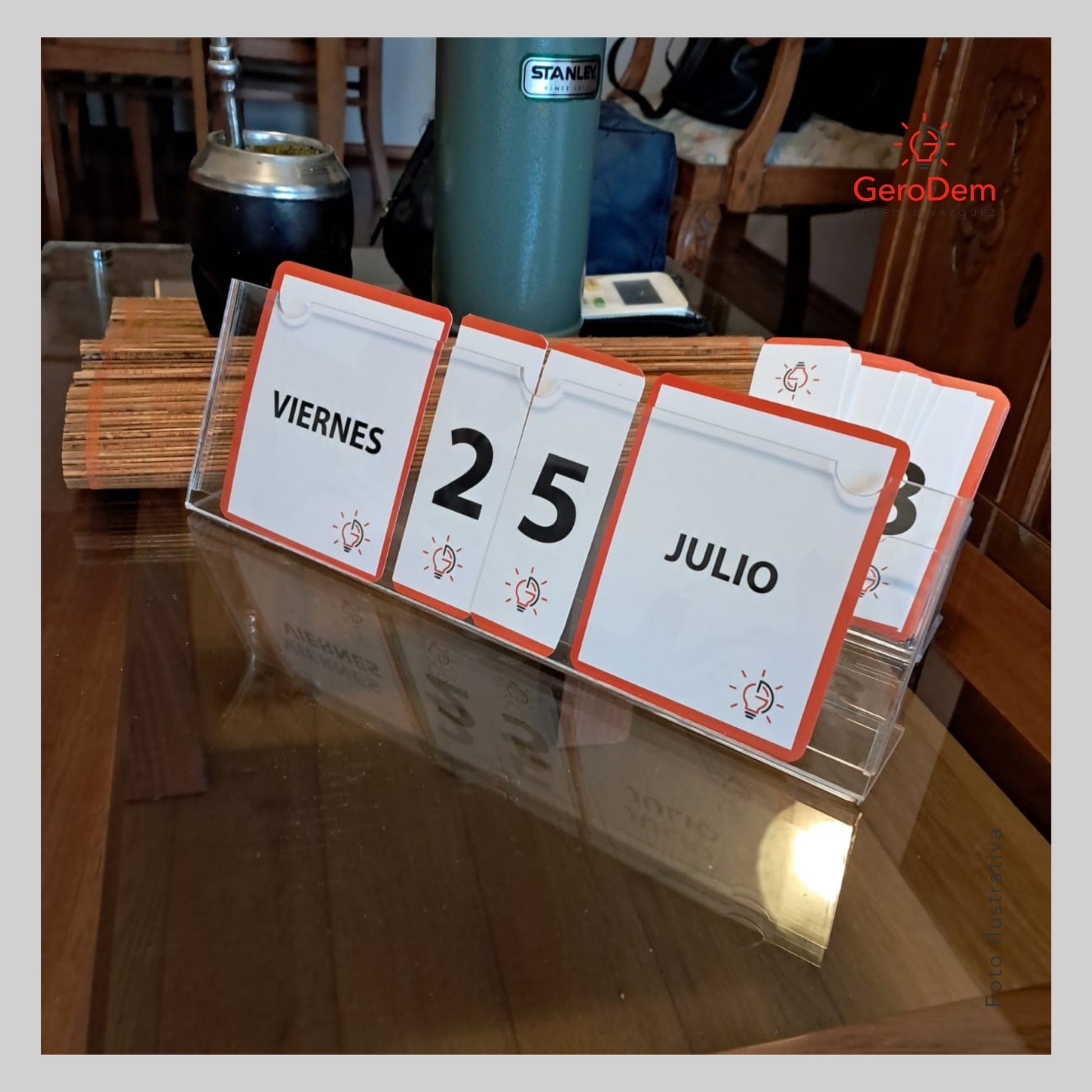 Gerodem® ha diseñado el Soporte de Orientación, un práctico recurso diseñado para facilitar la orientación en el día a día. De esta manera, promovemos una mayor independencia y bienestar, simplificando la organización de rutinas y fortaleciendo la orientación a la realidad en quienes enfrentan los desafíos de la demencia.